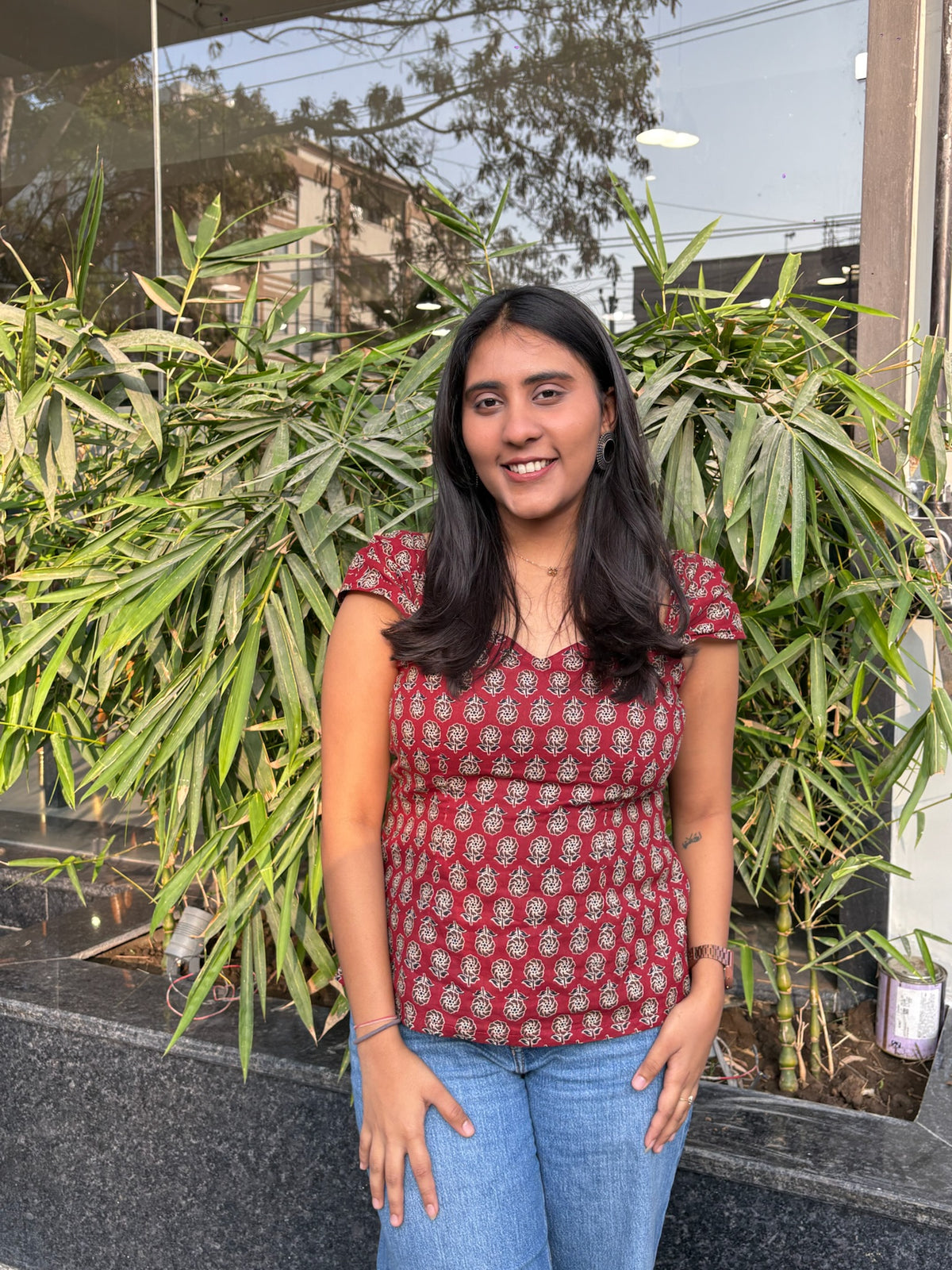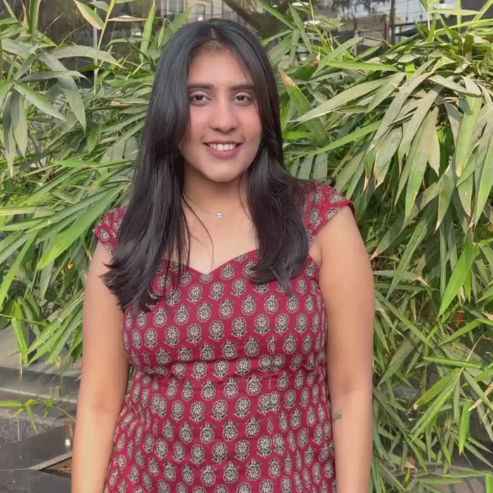 “Charming and effortlessly stylish, this Masakali top features a classic block print design on soft, breathable fabric. With its flattering fit and elegant neckline, and cut out back, it’s perfect for both casual outings and everyday comfort.”